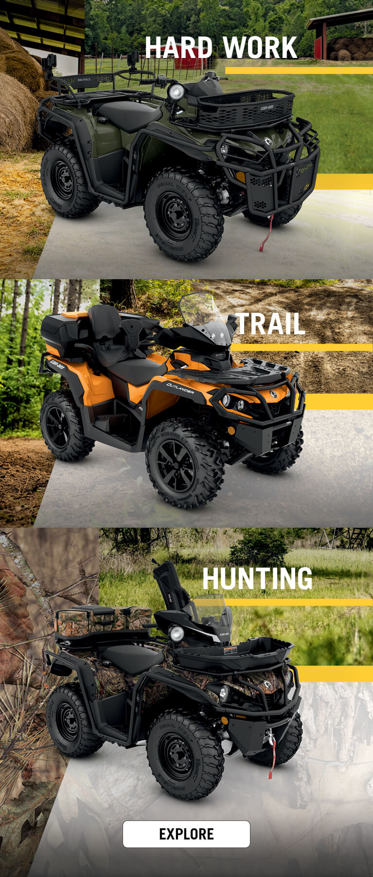 Whether you’re hauling at capacity or climbing the closest mountain, added 6x6 traction, low ‘L’ gear, and dual-level cargo box mean this Outlander loads & goes like no other ATV.